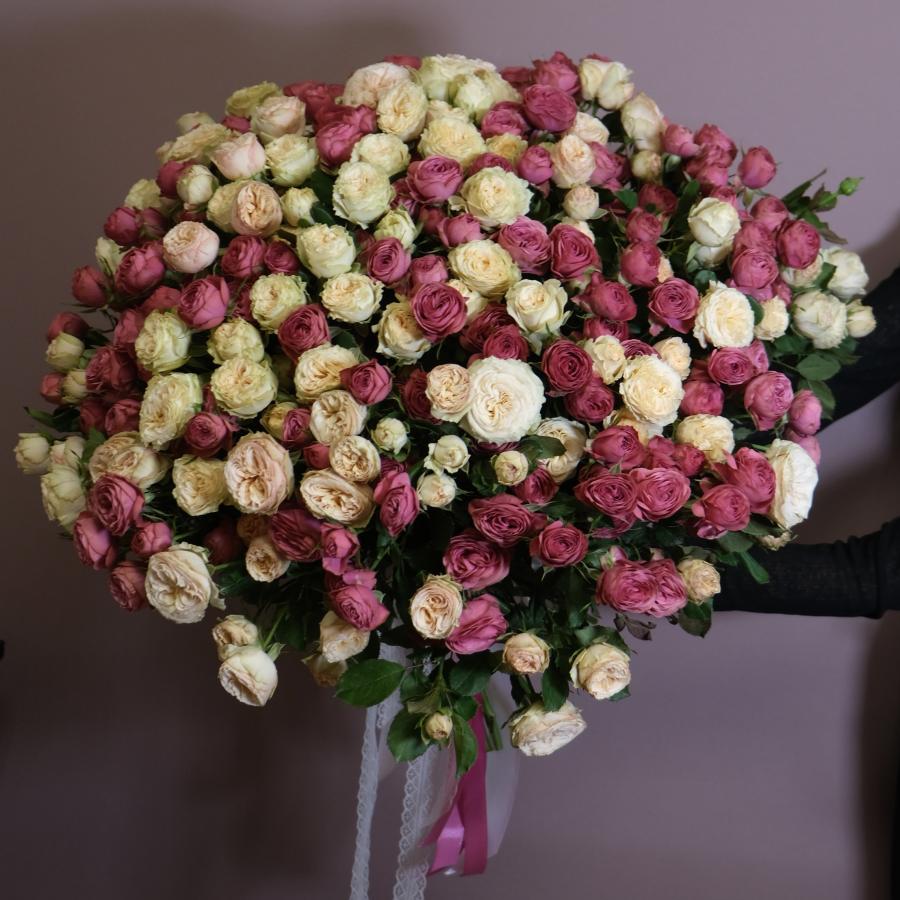 Букет из разноцветных кустовых пионовидных роз